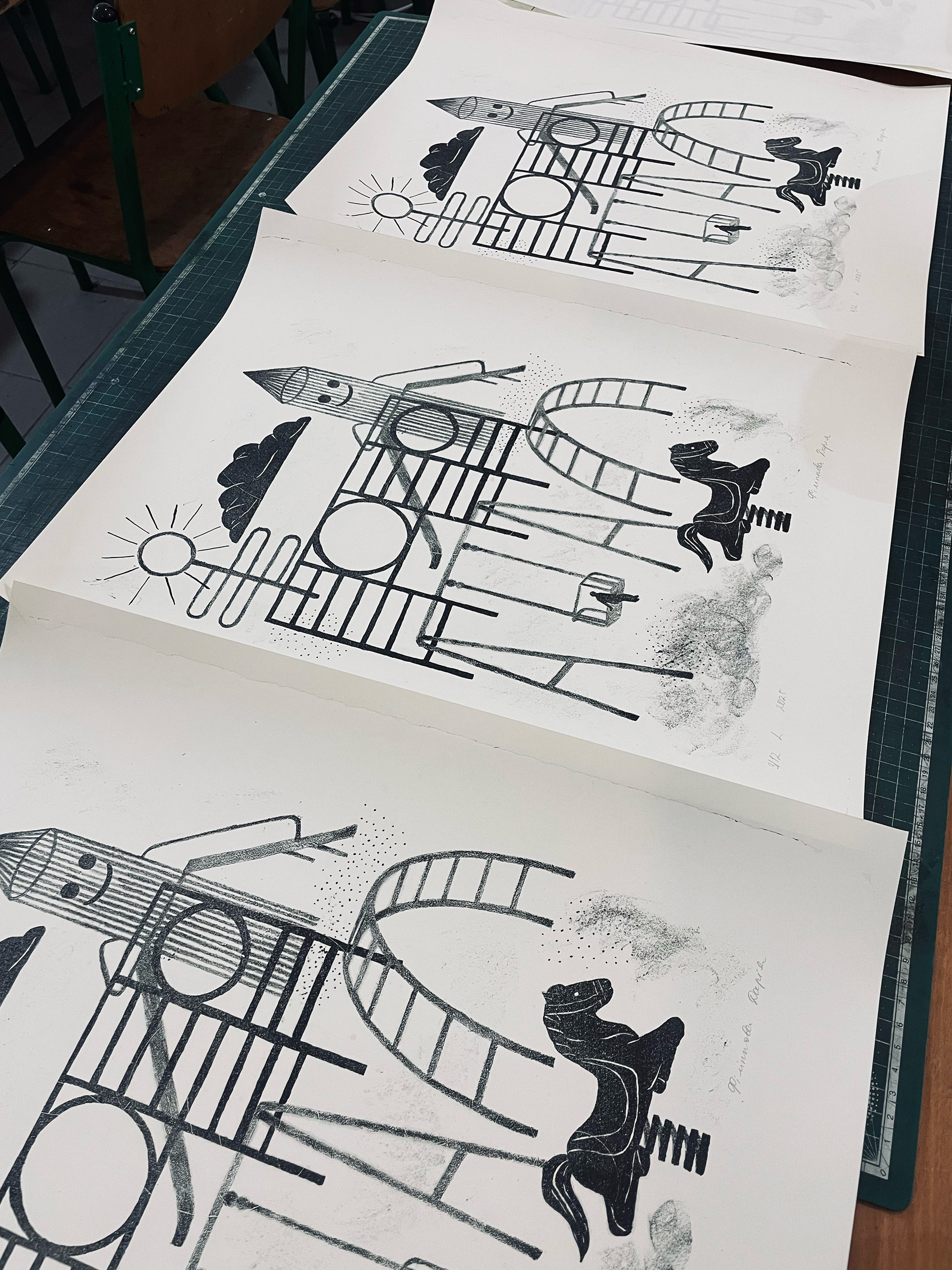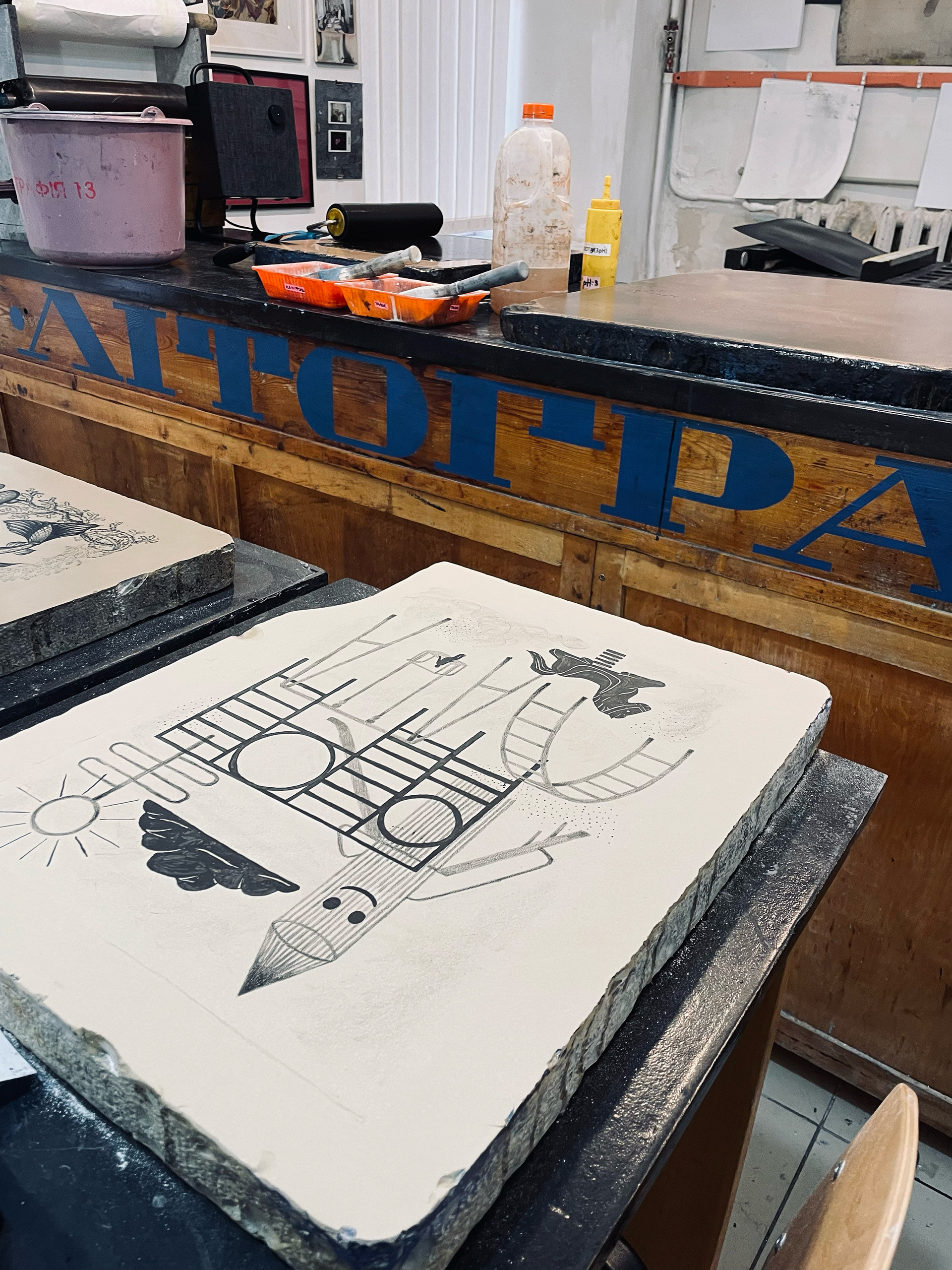 Hand-printed lithographs that I made at the National Academy of Arts in Lviv.