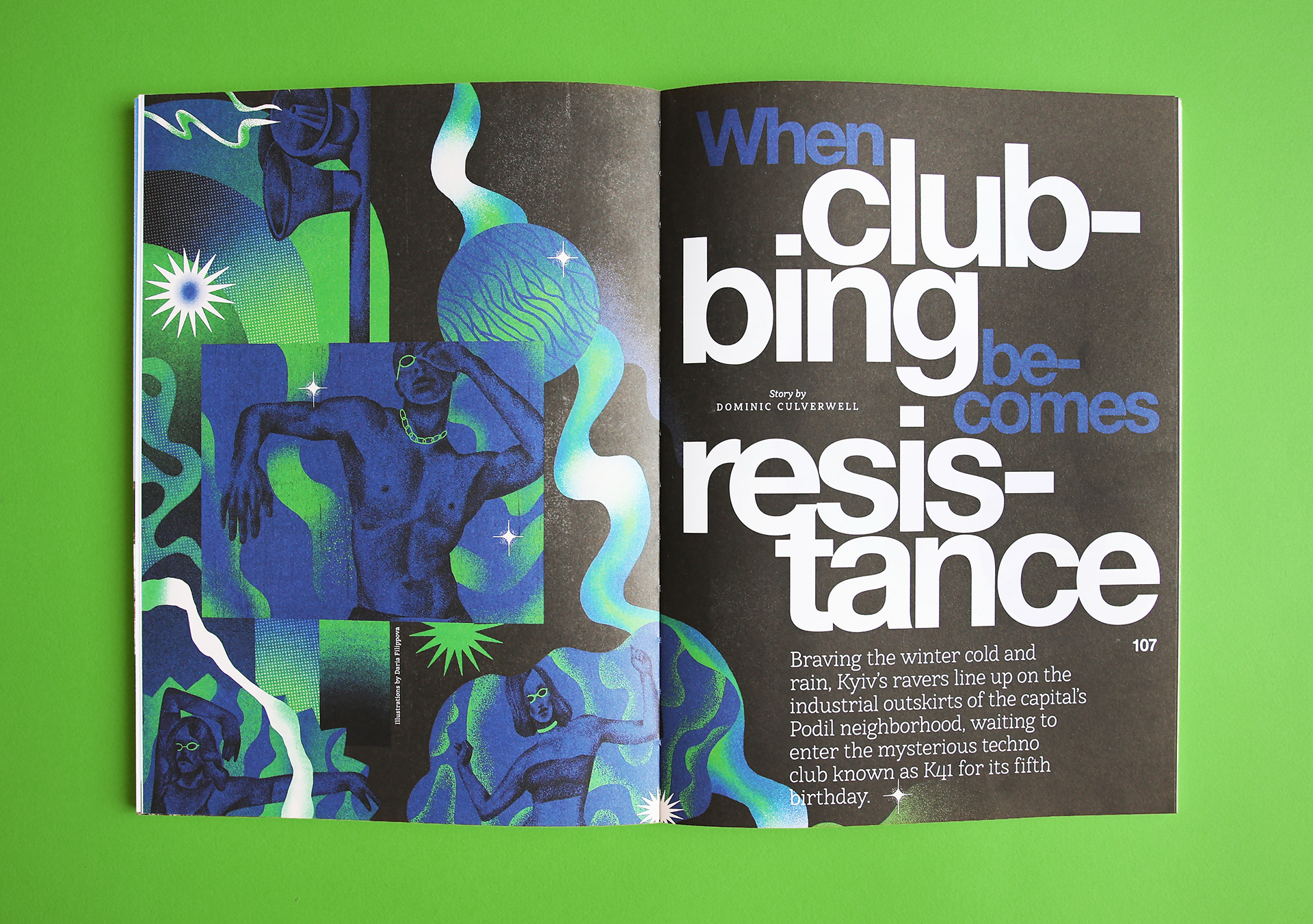 Illustrations for the print edition of the online magazine The Kyiv Independent for an article about how Kyiv rave community is accumulating its events to help the army and civilians during the Russian invasion of Ukraine.